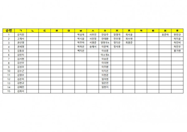 2월 15일(일)휴일 자습 명단(종합/퍼플반)가나다순