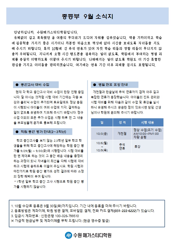 중등 [중등] 9월 가정통신문