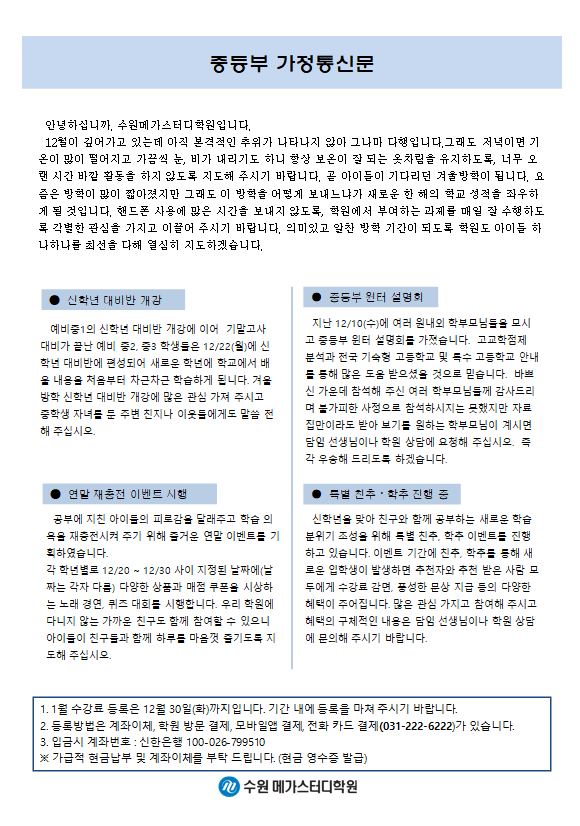 중등 [중등] 12월 가정통신문
