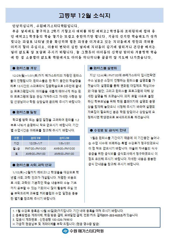 고등 [고등] 12월 가정통신문