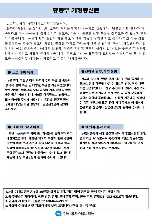 중등 [중등] 2월 가정통신문