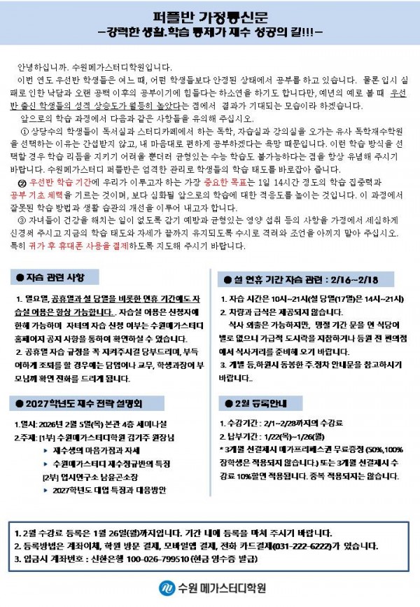 재수 [퍼플] 1월 가정통신문
